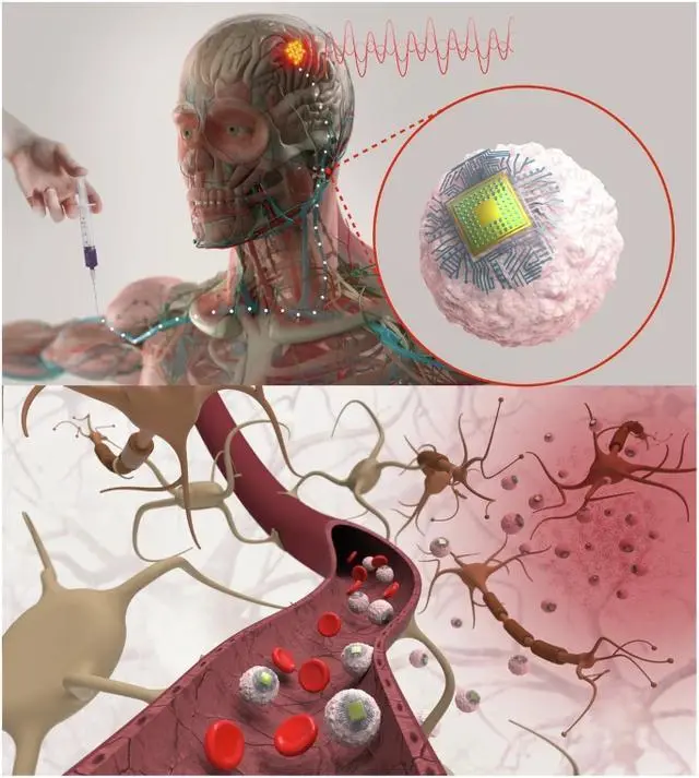 Circulatronics 系統(tǒng)的核心是可注射的、微小的無線電子設備群體 ——SWEDs(亞細胞大小的無線電子設備)。這些設備能夠通過注入血液后,進入大腦的炎癥區(qū)域。它們通過與名為單核細胞的免疫細胞融合,形成一種“細胞機器人”。